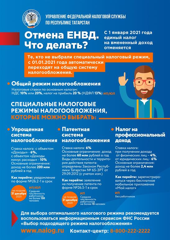 2012 елның 29 июнендәге 97-ФЗ номерлы Федераль закон нигезендә 2021 елның 1 гыйнварыннан вакытлыча керемгә (ЕНВД) бердәм салым рәвешендә махсус салым режимы гамәлдән чыгарыла.